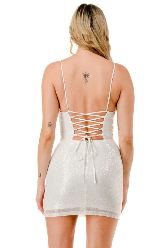 Drape yourself in sparkle with this sequin-embellished mini dress designed to turn heads.